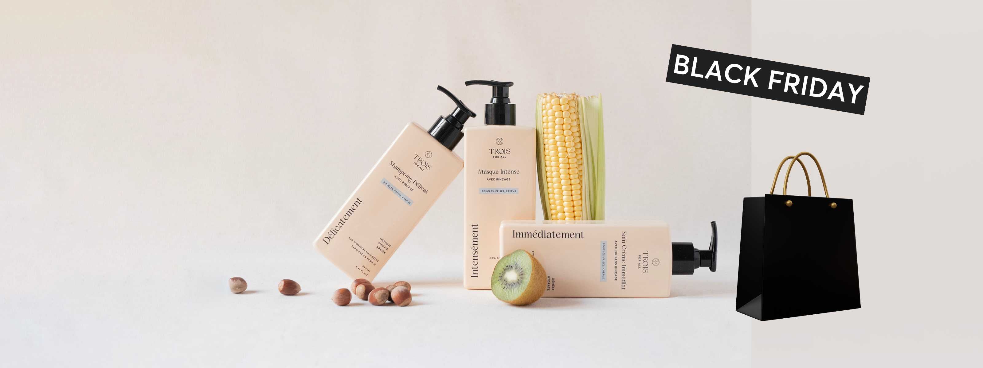 « Les cheveux frisés, bouclés ou crépus méritent d’être sublimés ! Sans contrainte ni compromis, Trois For All magnifie les boucles et apporte une touche de glamour, tout en souplesse et en douceur. »